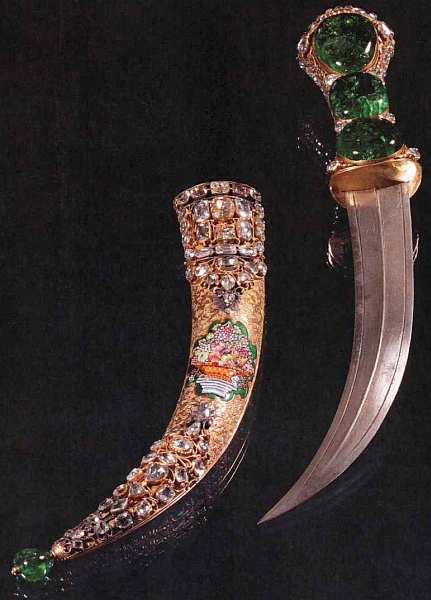 Известно, что в соседних с Османской империей странах из изделий турецких оружейников особенно ценилось клинковое оружие — сабли, мечи, кинжалы. На весь мир были известны знаменитые ятаганы — грозное оружие войска янычар. И если щит за знатным воином обычно вез оруженосец, то кинжал и сабля сопровождали своего владельца всегда. Так что султаны уделяли особое внимание собранию именно холодного оружия, которое своими украшениями давало максимальную возможность продемонстрировать богатство.