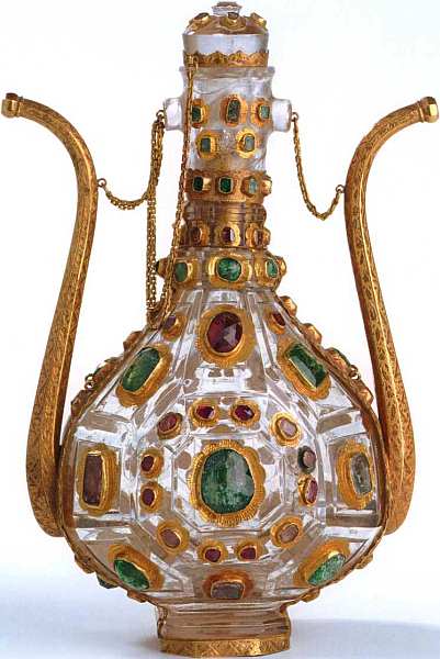 Кувшин грушевидной формы с двумя носиками имеет высоту чуть более 20 см. Он выполнен из горного хрусталя во второй половине XVI века — в эпоху расцвета Османского государства и наивысшего могущества его правителей. Оправа, цепь пробки и тонкие высокие носики с загнутыми концами сделаны из золота. По всей поверхности сосуда расположены золотые касты в виде цветочных розеток, в которые вставлены драгоценные камни — крупные рубины и изумруды, ограненные «розой» (старинная огранка с плоской нижней частью и 12 или 24 треугольными верхними гранями, обычно применявшаяся для мелких алмазов).