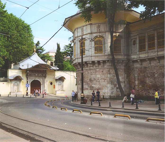 Прямо напротив него стоит дворец великого визиря — Садразам Сарай. За высокими воротами этой резиденции с середины XVII века часто решалась судьба всей Османской империи. Вырвавшись наконец из заключения в Клетке, новые султаны предпочитали предаваться радостям жизни, а не заниматься государственными делами. С этого времени во дворце визиря, а не в Топкапы все чаще стали проходить заседания Дивана. Послы иностранных держав стали передавать свои верительные грамоты визирю, а не правителю, поэтому есть мнение, что европейское название Османской империи — Высокая Порта — относится к воротам не Топкапы, а резиденции первого министра. Современные монументальные ворота, декорированные в стиле рококо, с двумя мраморными пристенными фонтанами, были возведены в 1845 при султане Абдул-Меджиде I.