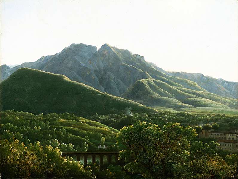 Картина «Вид на мост близ города Кавы Неаполитанского королевства» была создана мастером во время пятилетнего пребывания в Италии. Здесь на фоне величественных гор теряются жилые постройки, разбросанные по холмам, покрытым деревьями. Колорит решен в серебристоголубых и желто-зеленых тонах, что придает пейзажу цельность и выразительность.