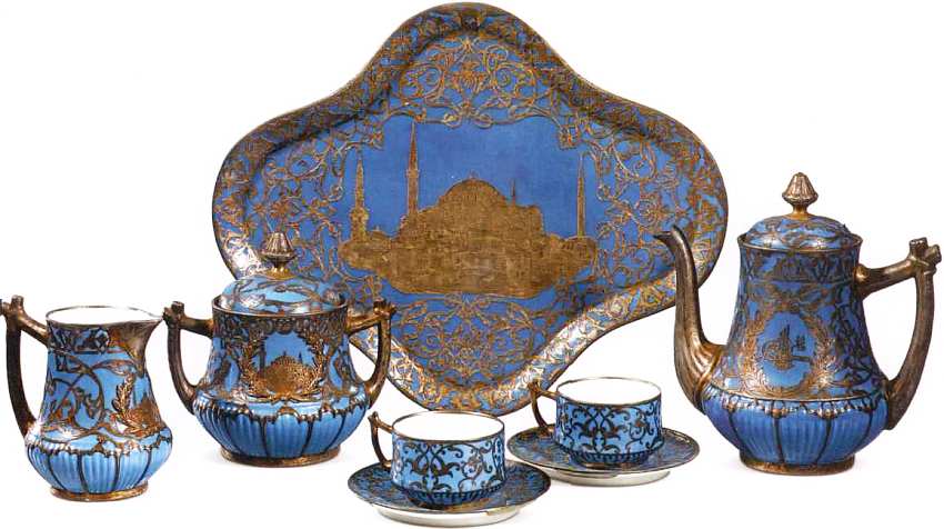 Фарфоровый чайный сервиз, инкрустированный серебром. Турция, конец XVIII века